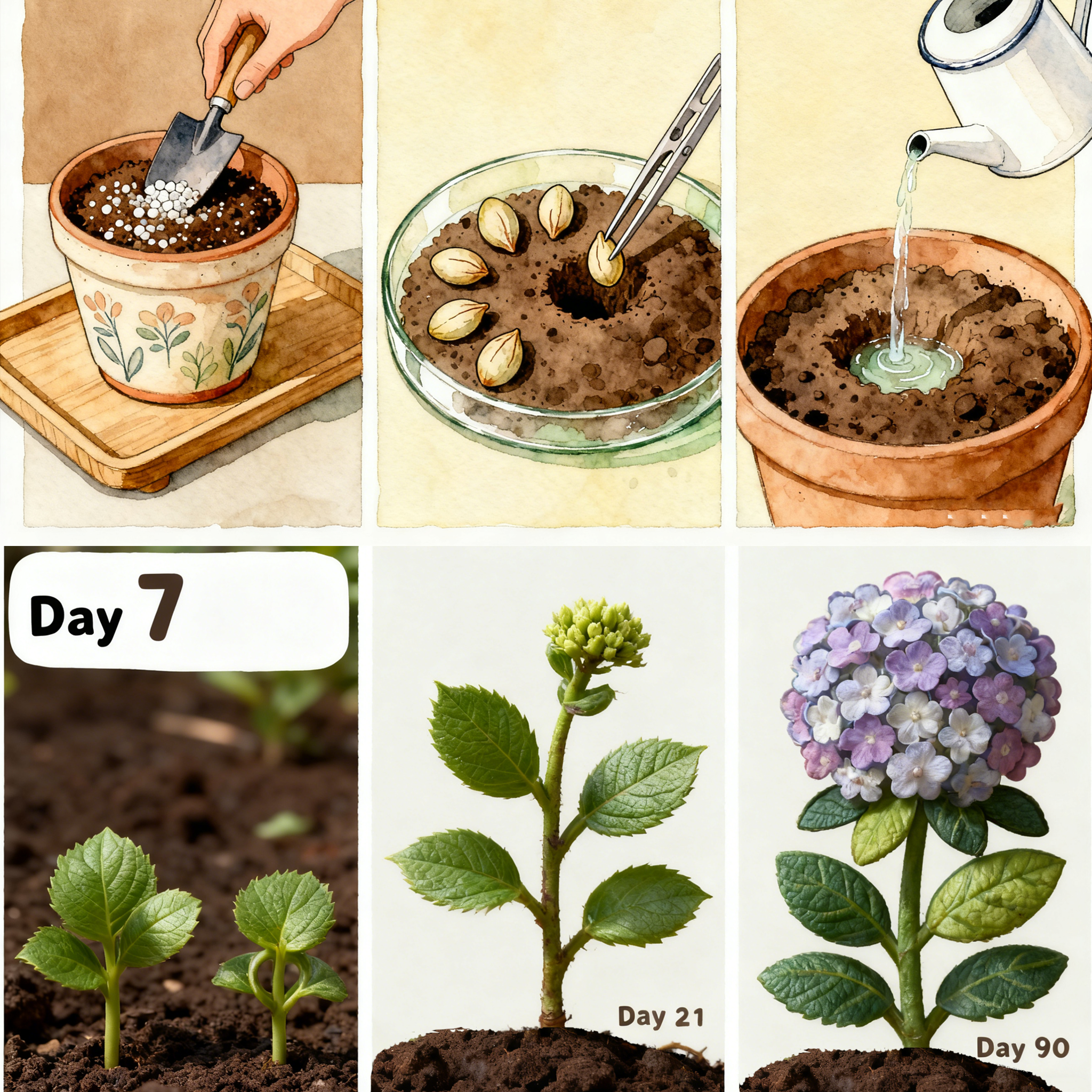3️⃣ Засяване: Разпределете семената по повърхността и леко покрийте с тънък слой почва. Покълването обикновено отнема 7–14 дни.